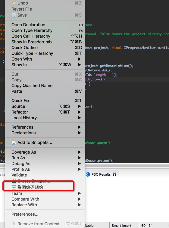 可以通过右键菜单、Toolbar按钮两种方式手动触发代码检测。同时结果面板中可以对部分实现了QuickFix功能的规则进行快速修复。